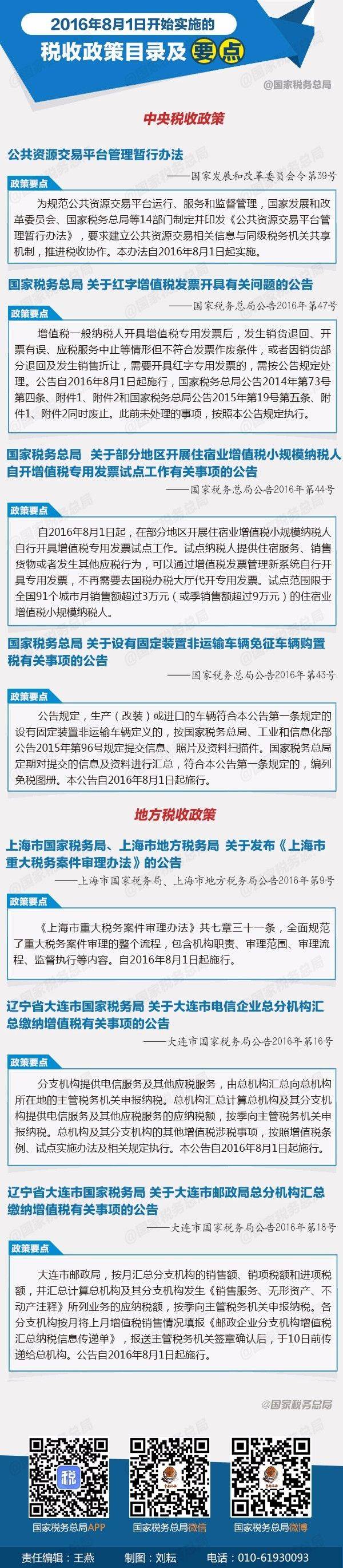 一图了解2016年8月1日开始实施的税收政策
