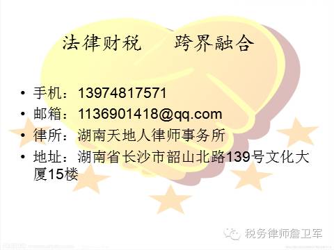 詹卫军律师、注册税务师、会计师,民建湖南省委法制委员会委员,湖南省劳动人事争议仲裁委员会兼职仲裁员,湖南省、长沙市涉案企业合规第三方监督评估组织专家。具有精深的专业知识和丰富的实践经验,主要擅长常年法律+税务顾问,涉... 详细>>